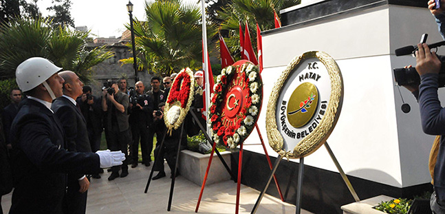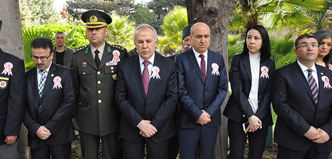 Tarihin tanıklık ettiği en büyük zaferlerden biri olan Çanakkale Zaferi’nin mimarları, şehadetlerinin 103. yıldönümünde saygı ve onurla anıldı. Tarihin tanıklık ettiği en büyük zaferlerden biri olan Çanakkale Zaferi’nin mimarları, şehadetlerinin 103. yıldönümünde saygı ve onurla anıldı. 18 Mart Çanakkale Deniz Zaferi ve Şehitleri Anma Günü münasebetiyle Hatay Valiliği tarafından şehitlikte düzenlenen programa Hatay Valisi Erdal Ata, Garnizon Komutanı Piyade Albay Ahmet Gürbüz, Hatay Büyükşehir Belediye(HBB) Başkan Vekili Ömer Dolar, Hatay İl Milli Eğitim Müdürü Kemal Karahan, il yöneticileri, STK temsilcileri ve şehit aileleri katıldı. Saygı duruşu ve İstiklal Marşı’nın okunmasıyla başlayan törende, aziz vatan uğruna ebediyete intikal eden şehitlerin anısına şehitlikte çelenk sunan HBB Başkan Vekili Ömer Dolar, tüm şehitlerin kabirlerini ziyaret ederek karanfil bıraktı. Hatay Valiliği tarafından düzenlenen programda şehitlerin aziz ruhu için Kuran tilaveti okunarak dualar edildi.