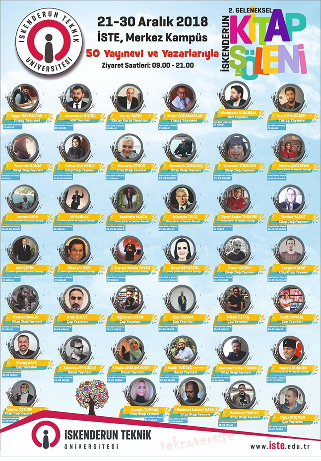 İskenderun Teknik Üniversitesi (İSTE) tarafından geçen sene ilk kez düzenlenen ve 100 bin kitapseverin ziyaret ettiği İSKENDERUN KİTAP ŞÖLENİ’nin ikincisi, bu yıl yine İSTE Merkez Kampüs’te kitap dostlarına kapılarını açtı. Yılsonuna kadar 10 gün boyunca açık kalacak organizasyonun resmi açılış töreni 25 Aralık Salı günü Saat 10.00’da yapılacak. İskenderun Teknik Üniversitesi (İSTE) kitapsever Hataylıların dileklerini gerçekleştirdi. Geçen yıl yoğun ilgi gören ve tekrar düzenlenmesi istenen Kitap Fuarı’nın gelenekselleştirilmesi için kolları sıvayan ve “İskenderun Kitap Fuarı” markasını tescil ettiren İSTE, bu yılki organizasyonu da düzenledi. Konu hakkında kısa bir bilgi veren İSTE Basın Yayın ve Halkla İlişkiler Birimi Koordinatörü Zahit Demir; “Geçen yıl ilkini gerçekleştirdiğimiz organizasyona gösterilen ilgi bizi bu yıl da motive etti. Geçen yıl aldığımız geri bildirimler ve bu seneki mevsim şartları nedeniyle bu yıl organizasyonumuzu çadırda değil, gemi şeklindeki mimarisi ile hemen kampüsümüz girişinde bulunan modern binamızda, kapalı bir ortamda yapıyoruz. Daha ilk günden yoğun ilgi gösterildi, çok sayıda yayınevi katılım sağladı, teşekkür ediyoruz. Roman, hikâye, şiir, hazırlık kitapları ve benzeri gibi neredeyse literatürdeki her çeşit kitap stantlarda yerini aldı. Çok sayıda şair ve yazarı binamızın içindeki konferans salonlarımızda kitapseverlerle buluşturuyoruz. Ayrıca, kitapseverler gelmişken İSTE Merkez Kütüphanesi ile İSTE Çocuk Kütüphanemizi de ziyaret etme fırsatı bulabiliyor. Organizasyonumuza kitap kurdu olan, kitap düşkünü olan, kitap dostu olan herkesi bekliyoruz. 30 Aralık akşamına kadar açık olacak. Kampüs girişimiz ve organizasyonun yapıldığı bina arasında servislerimiz var. İSTE’yen okullarımız için servis imkânları da var” şeklinde konuştu.