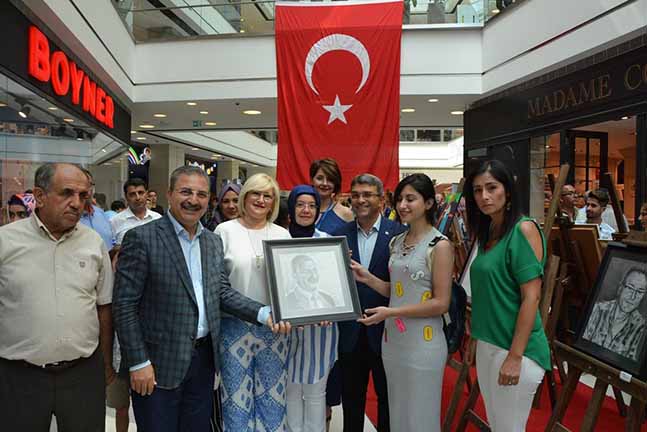 Antakya Belediye Başkanı İsmail Kimyeci, Antakya Belediyesi Gençlik Merkezi kursiyerlerinin hazırladığı ‘Renklerin Rotası’ adlı sergiye katıldı. Palladium Avm’de gerçekleşen sergiye AK Parti Hatay Milletvekili Adem Yeşildal ve eşi Raciye Yeşildal, Antakya Belediye Başkanı İsmail Kimyeci ve eşi Nursel Kimyeci, Antakya Halk Eğitim Merkezi ve Akşam Sanat Okulu Müdürü Ahmet Kocaoğlu, belediye başkan yardımcıları, daire müdürleri, kursiyerler ve çok sayıda vatandaş katılım gösterdi. Antakya Belediyesi Gençlik Merkezi kursiyerleriyle gurur duyduğunu belirten Antakya Belediye Başkanı İsmail Kimyeci; “Antakya Belediyesi çatısı altında düzenlenen kursu tamamlayarak bu güzel serginin açılmasını sağlayan kursiyerlerimize emeklerinden ve gayretlerinden dolayı teşekkürlerimi sunuyorum. Gençlik Merkezimizde 14 farklı branşta 1500 öğrencimize hizmet veriyoruz. Gençlik Merkezi’nde eğitim gören resim kursu öğrencilerimizin hazırladığı bu sergide emeği geçen herkesi kutluyor, başarılarının devamını diliyorum.” dedi. Resim sergisine katılmaktan memnuniyet duyduğunu belirten AK Parti Hatay Milletvekili Yeşildal; “Antakya Belediyesi Gençlik Merkezi birçok branşta eğitim veren, çocukların ve gençlerin zamanlarını güzel ve faydalı bir şekilde geçirmelerine imkan sağlayarak hizmet veriyor. Antakya Belediyesi Gençlik Merkezi öncülüğünde Resim Sergisi, Taş Boyama Sergisi, Mozaik Sergisi gibi birçok güzel faaliyete imza atıldı. Bu nedenle hem Antakya Belediye Başkanı İsmail Kimyeci’yi hem de Antakya Belediyesi personellerini tebrik ediyorum. Ayrıca bu projeye destek veren Halk Eğitim Müdürlüğümüz ve usta öğretmenlerimiz, bu güzel projeyi hayata geçirerek gençlerimizin güzel eserler ortaya çıkarmasına vesile oldular. Bu güzel sergide emeği geçen herkese teşekkür ediyor, başarılarının devamını diliyorum.” dedi. Başkan Kimyeci ve beraberindeki heyet konuşmaların ardından kurdele kesimi ile sergi açılışını gerçekleştirdiler. Paladium AVM zemin katta açılan Resim ve görsel sanatlar sergisini gezen AK Parti Hatay Milletvekili Yeşildal, Başkan Kimyeci ve eşi Nursel Kimyeci eserleri büyük bir hayranlıkla incelediklerini ve gördüğü başarıdan dolayı mutluluk duyduklarını ifade ettiler.