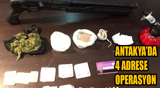 Antakya ilçesinde 4 ayrı adrese yapılan uyuşturucu operasyonunda uyuşturucu ve ruhsatsız av tüfeği ele geçirildi. Hatay Narkotik Suçlarla Mücadele ekiplerince il genelinde uyuşturucuyla etkin mücadele kapsamında suçun önlenmesi, şüpheli şahısların suç unsurlarıyla birlikte yakalanabilmeleri amacıyla Antakya ilçesine bağlı Ekinci mahallesinde bulunan dört ayrı ikamette yapılan aramada; S.A, G.E, M.E ve Ş.Ç isimli şahsılardan çeşitli boy ve ebatlarda uzunluğu 2 metre civarında toplam 8 adet Hint Keneviri Bitkisi, 106 gram Kubar Esrar 3 adet ruhsatsız Av Tüfeği ele geçirildi.