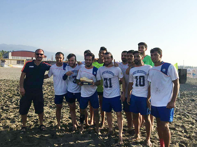 Arsuz Belediyesi’nin yaklaşık 1700 sporcuyu buluşturduğu 3. Spor Şenliği kapsamında gerçekleşen 2017 TFF Plaj Futbol Ligi Arsuz etabının şampiyonu Arsuz Belediyesi Plaj Futbolu Takımı bu hafta sonu Türkiye finalleri için Alanya’ya gidecek. Türkiye Futbol Federasyonu(TFF) tarafından Türkiye’de sadece 16 noktada oynanan ve Hatay’da da üç yıldır da Arsuz’da gerçekleştirilen plaj futbolu etabı kapsamında zirveye ulaşan Arsuz Belediyesi, 20-27 Eylül 2017 tarihleri arasında Alanya’da düzenlenecek olan Plaj Futbolu Türkiye Şampiyonası’nda Hatay’ı temsil edecek. Türkiye finallerine gitmeye hak kazanan 16 etap birincilerinin karşılaşacağı şampiyonada daha önce Arsuz’a üçüncülük kupası ve fair – play ödülü kazandıran Arsuz Belediyesi bu yılki şampiyonada zirveye göz dikti.