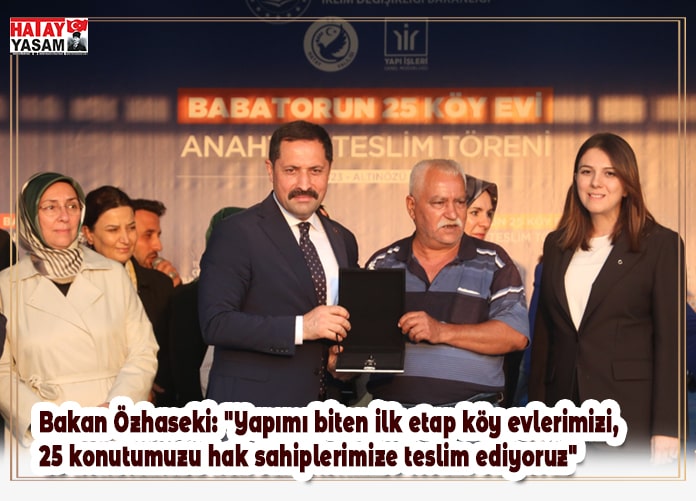 Çevre, Şehircilik ve İklim Değişikliği Bakanı Mehmet Özhaseki, “Bin yılın felaketinde Hatay’ımızda 254 bin 195 konutumuz zarar görmüştü. Bunlardan 34 bin 129’u köy evlerimizdi. Şimdi yapımı biten ilk etap köy evlerimizi, 25 konutumuzu hak sahiplerimize teslim ediyoruz” dedi.