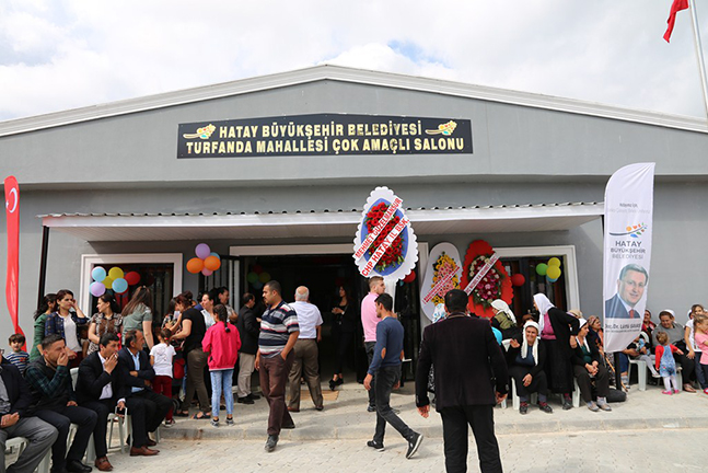 Hatay Büyükşehir Belediye Başkanı Doç. Dr. Lütfü Savaş, hemşehrilerinin sosyal hayatlarını iyileştirmek ve kolaylaştırmak amacıyla Yayladağı ilçesinde yapımı tamamlanan Turfanda Çok Amaçlı Salon’un açılışını gerçekleştirdi. Gerçekleştirilen açılış törenine Hatay Büyükşehir Belediye Başkanı Doç. Dr. Lütfü Savaş, CHP Hatay Milletvekili Serkan Topal, HATSU Genel Müdürü Mehmet Çaparali, HBB Kültür ve Sosyal İşler Dairesi Başkanı Gökhan Yıldırım, Yayladağı Belediye Başkanı Mustafa Kemal Dağıstanlı, Yayladağı CHP İlçe Başkanı Murat Kalabaz, Turfanda Mahalle Muhtarı Süleyman Yüce, mahalle muhtarları ve Turfandalılar katılım gösterdi. Çok amaçlı salonun açılışı Başkan Savaş’ın Turfanda mahalle sakinleri ile yemek yemesinin ardından Dilara Ay’ın Başkan Savaş’a şiir okuması ile başladı. Turfanda halkına göstermiş oldukları duyarlılıktan dolayı teşekkür eden Başkan Savaş, kendisine Hatay’da gerçekleştirmiş olduğu hizmetler ile alakalı şiir yazan Dilara Ay’a çiçek takdim etti.
