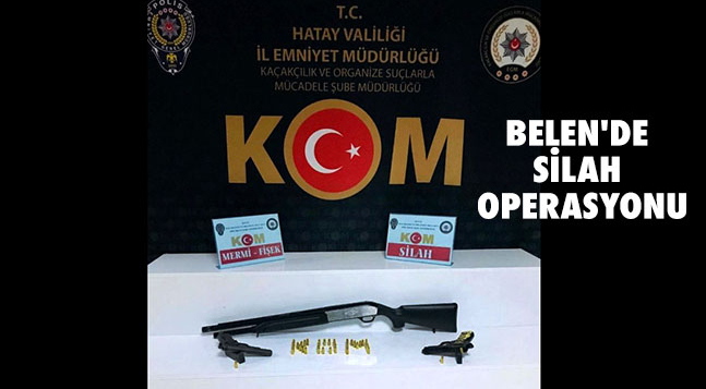 Hatay’ın Belen ilçesinde 3 adet silah ve 41 adet tabanca fişeği ele geçirildi. Edinilen bilgiye göre, Kaçakçılık ve Organize Suçlarla Mücadele Şube Müdürlüğü Organize Suçlar Büro Amirliği ekiplerince, İssume mahallesinde, 2 adet tabanca, 1 ruhsatsız av tüfeği ve 41 adet tabanca fişeği ele geçirildi. Olayla ilgili, Ü.G isimli şüpheli gözaltına alındı.