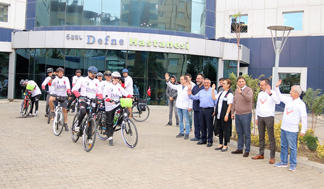 Bu yıl dördüncüsü düzenlenen Atamızın yolundayız bisiklet turuna katılan bisikletliler Anıtkabir’e uğurlandı.Hatay Bisiklet Spor Kulübü Başkanı Doç.Dr.Şerafettin Kaya önderliğinde Atamızın ebedi istirahatgahına pedal çevirecek olan 10 bisikletçi kendilerine sponsorluk desteği sağlayan Özel Defne Hastanesinin önünde düzenlenen uğurlama töreni ile Atamızın yolundayız bisiklet turunun startını verdiler.Bisikletçiler arasında Defne Hastanesi doktorlarından Serhat Gözel’in de bulunduğu kafileyi bu anlamlı yolculuklarına uğurlayanlar arasında Defne Hastanesi Genel Müdürü Uzm.Dr.Mehmet Çelikel,İşletme Müdür Yardımcısı İbrahim Ünal,Başhemşire Nursen Ülke ve Doktorlar vardı. Çıktıkları bu kutlu yolda tüm bisikletçilere başarı dileyen Defne Hastanesi Genel Müdürü Uzm.Dr.Mehmet Çelikel,Sosyal sorumluluk projeleri ile her daim farkını ortaya koymayı başarmış bir kurum olarak böylesine anlamlı bir etkinliğe doğru yol alacak olan Hatay Bisiklet Spor Kulübü bisikletçilerinin yanında yer almanın gururunu yaşadıklarını ifade ederek kazasız belasız bir şekilde Anıtkabir’e ulaşmalarını diledi. Bir kez daha Atam Yolundayız bisiklet turu ile Anıtkabire gidecek olmanın gururu adeta gözlerinden okunan bisikletçiler adına açıklama yapan Hatay Bisiklet Spor Kulübü Başkanı Doç.Dr.Şerafettin Kaya:” Bu yıl dördüncüsünü gerçekleştireceğimiz Atam Yolundayız bisiklet turunun startını Antakya’dan veriyoruz.Toplamda 650 Km pedal basacağımız turumuzda devlet karayolunu takip ederek sırasıyla Payas,Erzin,Dörtyol,Toprakkale,Ceyhan,Adana,Tarsus,Pozantı,Aksaray,Şereflikoçhisar ve Kulu güzergahları ile 9 Kasım akşamı Ankara’ya varmayı planlıyoruz.10 Kasım sabahı Türkiye’nin diğer illerinden Ankara’ya pedal çeviren bisikletçiler ile birlikte saat 9.05’te saygı duruşumuzu gerçekleştirerek toplu halde Anıtkabir’e pedal çevireceğiz.Anıtkabir ziyaretimizde diğer bisikletçi dostlarımız ile birlikte kendi illerimizden getirdiğimiz Türk Bayraklarını mozoleye bırakacağız.Geleneksel hale getirmeyi planladığımız etkinliğimizdeamacımız Atamıza saygımızı ve bağlılığımızı göstermektir. Bisikletle gitmemiz ise bisiklet farkındalığını oluşturmaktır.Ekibimizde öğretmen,doktor ve özel sektörde görev yapan arkadaşlarımız bulunmaktadır.Her türlü güvenlik önleminin alındığı Turumuz boyunca bir araç bizi takip edecek olup bizlere destek veren Hatay Valiliğine,Emniyet ve Jandarma birimlerimize sonsuz şükranlarımızı sunuyor Özel Defne Hastanesine teşekkür ederek tüm bisikletçilerimize hayırlı yolculuklar diliyorum.”dedi. Özel Defne Hastanesi önünde çekilen toplu fotoğrafın sonrasında bisikletçiler hastane yönetimi ve vatandaşların alkışları ile Ankara’ya uğurlandı.