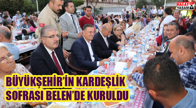 Hatay Büyükşehir Belediyesinin 11 ayın sultanı mübarek Ramazan ayı münasebetiyle her yıl il genelinde kurduğu kardeşlik sofralarının son durağı Belen oldu. Ramazan ayının maneviyatını Hatay halkı ile bir arada yaşamak isteyen Hatay Büyükşehir Belediye Başkanı Doç. Dr. Lütfü Savaş, Belenli hemşehrileri ile kardeşlik sofrasında bir araya geldi. 15 Mayıs Çarşamba günü Belen’deki pazar alanında kurulan sofraya Başkan Savaş ile birlikte Belen Belediye Başkanı İbrahim Gül ve çok sayıda vatandaş katıldı. Sevgi, saygı, rahmet ve bereket çerçevesinde kurulan kardeşlik sofrasında bir araya gelen Belenliler oruçlarını dualar eşliğinde açtı. İftarın ardından eski Ramazanların kültürünü yaşatmak adına sahnelediği geleneksel Türk tiyatrosundan örneklerle vatandaşlara unutamayacakları bir gece yaşatan HBB Şehir Tiyatrosu, gölge oyunu, meddah, orta oyun, Aşuk ile Maşuk, köçek ve mani gösterileri ile izleyenlerden, özellikle çocuklardan büyük beğeni topladı.