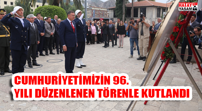 Hatay Büyükşehir Belediye Başkanı Doç. Dr. Lütfü Savaş, Cumhuriyetimizin 96. yıldönümü münasebetiyle düzenlenen törene katıldı. 29 Ekim Cumhuriyet Bayramı kutlama etkinlikleri kapsamında Hatay Valiliği tarafından düzenlenen çelenk sunma törenine Başkan Savaş ile birlikte Hatay Valisi Rahmi Doğan, CHP Hatay Milletvekili Serkan Topal, Garnizon Komutanı Vekili Albay Uğur Anabal, protokol üyeleri, ilçe belediye başkanları, gaziler, kurum ve kuruluş müdürleri, STK temsilcileri, siyasi parti il başkanları ve çok sayıda vatandaş katıldı. Cumhuriyetimizin kurucusu Ulu Önder Mustafa Kemal Atatürk ve silah arkadaşlarının manevi huzurlarında saygı ile eğilen Başkan Savaş, şükranlarını sundu. Atatürk Anıtı’na çelenk sunulması ve İstiklal Marşı’nın okunmasının ardından Hatay Valisi Rahmi Doğan duygu ve düşüncelerini paylaştı.