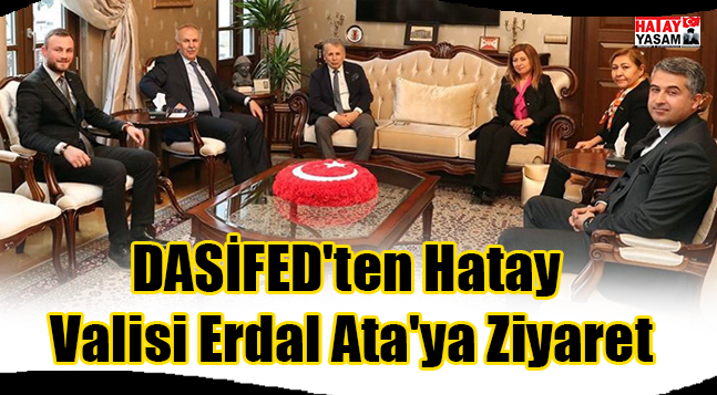 DASİFED Başkanı Faruk Ekinci beraberindeki heyet ile Vali Erdal Ata’ya nezaket ziyaretinde bulundu.DASİFED Başkanı Faruk Ekinci beraberindeki heyet ile Vali Erdal Ata’ya nezaket ziyaretinde bulunarak, bu yıl gerçekleştirilecek olan etkinlik ve projelerle ilgili bilgi verdi. Doğu Akdeniz Sanayi ve İş Dünyası Federasyonu (DASİFED) Başkanı Faruk Ekinci, Başkan Yardımcıları Belgin Ünal ve Gökhan Alkan, Sayman Rana Atalay ve Genel Sekreter Onur Dönmezer’in yer aldığı heyet Hatay Valisi Erdal Ata’ya makamında nezaket ziyaretinde bulundu. Bu yıl DASİFED ev sahipliğinde Hatay’da yapılacak TÜRKONFED İş Dünyası Zirvesi hakkında bilgi veren DASİFED Başkanı Faruk Ekinci, bölgenin kalkınması için yapmış olduğu faaliyetlerden bahsetti. Vali Ata, TÜSİAD üyesi olan ve geçtiğimiz haftalarda yapılan Genel Kurul’da yeni seçilen DASİFED Başkanı Faruk Ekinci’ye ve Yönetim Kurulu’na yeni görevinde başarılar diledi. Başkan Ekinci ise Vali Ata’ya nazik kabulünden ve güzel dileklerinden dolayı teşekkür etti.