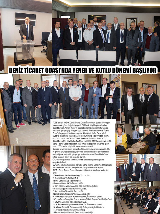 TOBB’a bağlı İMEAK Deniz Ticaret Odası İskenderun Şubesi’nin olağan kongresinde görev değişimi yaşandı. Yaklaşık 18 yıldır görevde olan Bülent Kavsak, Adnan Yener’in meclis başkanlığı, Kemal Kutlu’nun da başkanlık için yarıştığı listeye 6 oyla kaybetti. İskenderun Deniz Ticaret Odası’nda yepyeni bir dönem açılıyor. Geçtiğimiz hafta Pazar günü kıyasıya çekişmeye sahne olan İskenderun Deniz Ticaret Odası seçimlerinde kazanan taraf Adnan Yener ve Kemal Kutlu’nun listesi oldu.