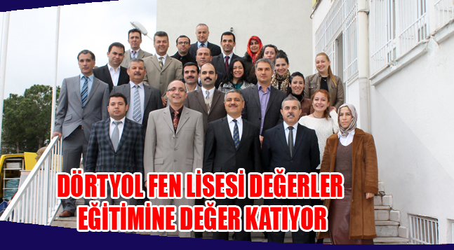Dörtyol’un en gözde okulu olan Fen Lisesi marka kurum, prestijli okul hedefine adım adım yaklaşıyor. Servet Er’in Müdürlüğünü yaptığı okula ocak ayında Çağatay Çaça Müdür Başyardımcısı olarak atanırken, Bülent Adıkutlu, Gönül Arslan ve Ahmet Döner’de Müdür yardımcılıkları görevine getirildi. Kadrosunu tamamlayan okul çalışma uyumunun güzel bir örneğini sergileyerek değerler eğitimi kapsamında etkinlik yaptı. 21 derslikte 578 öğrencisi bulunan Dörtyol Fen Lisesi’nde mesleğinin zirvesindeki 35 seçkin öğretmen eğitim öğretim vermekte. Dörtyol Fen Lisesi Müdürü Servet Er “A Takımım” dediği müdür yardımcılarıyla birlikte hedeflerinin “Marka Kurum, Prestijli Okul” olduğunu ifade ederken özellikle yapımı büyük bir hızla devam eden yeni bina inşaatının 2015 – 2016 eğitim öğretim yılına yetişeceğini ve önümüzdeki yıl yeni binalarına taşınarak çok daha büyük başarılara ve etkinliklere imza atacaklarını belirtiyor.