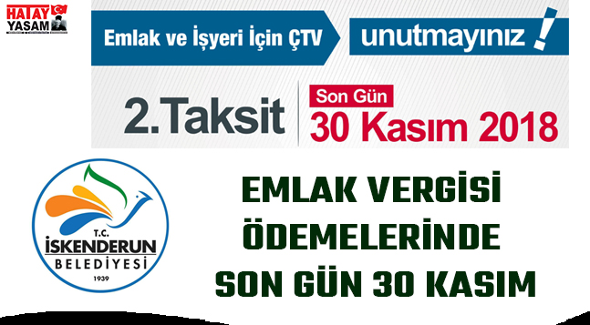İskenderun Belediyesi,2018 yılı Emlak ve Çevre Temizlik Vergisi (ÇTV) ikinci taksit ödemesi konusunda mükellefleri uyardı. Vatandaşların cezalı duruma düşmemesi için vergilerini 30 Kasım 2018 tarihinde mesai bitimine kadar ödemeleri gerektiği belirtildi. Belediye tarafından yapılan açıklamada, mükelleflerin vergi borçlarını belediye hizmet binası içerisindeki veznelerden veya www.İskenderun.bld.tr resmi internet sitesinden E-Belediye hizmetleri sayesinde sorgulayabilecekleri ve borçlarını ödeyebilecekleri kaydedildi. İskenderun Belediye Başkanı Seyfi Dingil, belediye sınırları dâhilinde faaliyet gösteren ev ve iş yerlerinin 2018 yılı çevre temizlik, emlak 2. taksitinin son ödeme süresinin 30 Kasım 2018 tarihinde sona ereceğini belirterek, ev ve iş yeri sahibi mükelleflerin cezalı duruma düşmemeleri ve sıkışıklığa mahal vermemeleri için vergilerini ödemeleri hususunda uyarılarda bulundu.