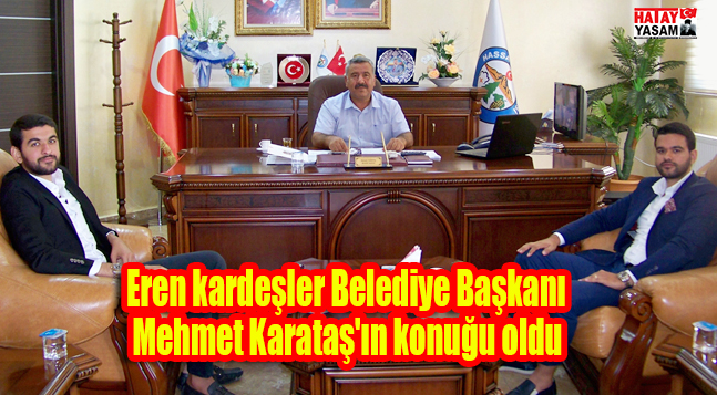 Genç işadamları Ahmet Eren ve Ertan Eren, Hassa Belediye Başkanı Mehmet Karataş’a nezaket ziyaretinde bulundular. Hassa Güler Eren Anaokulu miniklerini ilköğretim haftası dolayısıyla ziyaret edip, öğrencilere kırtasiye ve giyim malzemeleri armağan eden Ahmet Eren ve Ertan Eren kardeşler, okul ziyaretleri öncesinde Hassa Belediye Başkanı Mehmet Karataş’ın konuğu oldular.