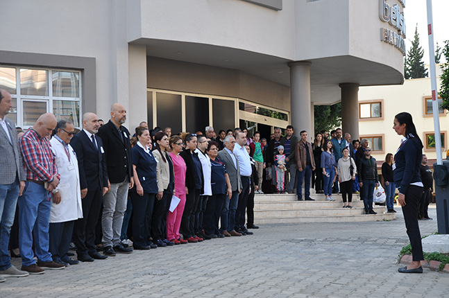 Ulu Önder Mustafa Kemal Atatürk’ün aramızdan ayrılışının 80. yıl dönümü münasebetiyle, İskenderun Gelişim Hastanesi binası önünde anma töreni gerçekleştirildi. İskenderun Gelişim Hastanesi idarecileri, doktorları ve personelinin hazır bulunduğu törende; saat 9’u 5 geçe, siren sesleri eşliğinde iki dakikalık saygı duruşunda bulunuldu ve akabinde İstiklal Marşı okundu.