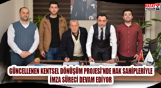 Antakya Belediyesi Emek ve Aksaray Mahallesi Kentsel Dönüşüm Projesi’nde hak sahipleriyle ıslak imzalı resmi sözleşme süreci yapılan yeni değişikliklerin ardından hızlı bir şekilde devam ediyor. Antakya’ya yepyeni bir görünüm kazandıracak Kentsel Dönüşüm Projesi’nde yapılan yeni değişikliklerin ardından hak sahipleri Ekrem Alış, Gülşen Alış, Züleyha Beyaz, Mehmet Çolakoğlu, Beyazıt Yeşildal, Enver Kılınç, Sibel Sunaç ile ıslak imzalı sözleşme imzalandı. İmza törenine Başkan Yardımcısı Elçin Eryetli ve Kentsel Dönüşüm Müdürü Tüge Gündüz eşlik etti.