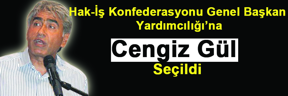 Çelik-İş Sendikası Genel Başkanı Cengiz Gül’ün, Hak-İş Konfederasyonu Genel Başkan Yardımcılığı’na getirildiği bildirildi. Çelik-İş Sendikası İskenderun Şube Başkanlığı’ndan yapılan yazılı açıklamada, Hak-İş Konfederasyonu’nun yaptığı ilk olağan toplantıda, yönetim kuruluna seçilen Cengiz Gül’ün Hak-İş Konfederasyonu Genel Başkan Yardımcılığı’na getirildiği belirtildi. Cengiz Gül, kendisine verilen görevi en iyi şekilde yerine getireceğini, çalışanların haklarını alması noktasında var gücüyle çalışacağını bildirdi