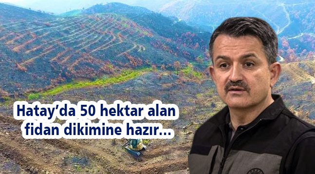 | Tarım ve Orman Bakanı Bekir Paktemirli Hatay’daki yangının izlerini hızlıca sileceklerini belirterek şimdiden 50 hektar alanda fidan dikim hazırlığını tamamladıklarını açıkladı. Hatay’da son iki ayda meydana gelen yangınlarda zarar gören orman alanlarının yeniden ağaçlandırılması için bölgede hazırlıklar sürdürülüyor. 8-9 Ekim tarihlerinde üç ilçeyi saran yangının ardından Hatay’daki yangınları yakından takip eden Tarım ve Orman Bakanı Bekir Paktemirli sosyal medya hesabından yaptığı açıklamada, Hatay’da yangının izlerini hızlıca sileceklerini belirterek şimdiden 50 hektar alanda fidan dikim hazırlığını tamamladıklarını açıkladı.Diğer yandan Kahramanmaraş Orman Bölge Müdürlüğü İskenderun Orman İşletme Müdürlüğü sınırlarındaki Belen, İskenderun ve Arsuz ilçeleri bağlı yanan sahalarda toprak işleme çalışmaları başlatıldı, fidan dikimi zamanına sahalar fidan dikmek için hazır olacağın bildirildi.YAYMAN HIZLA AĞAÇLANDIRACAĞIZ