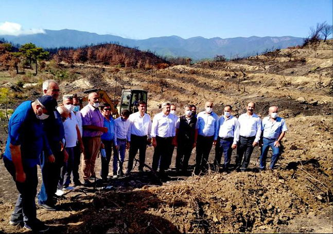Samandağ’da Yeniköy, Seldiren, Yaylacık ve Hezendüzü köylerinde yangından etkilenen bölgede taraçalandırma çalışmalarını yerinde inceleyerek Orman Müdürü Osman Koç’tan bilgi alan Hatay Milletvekili Hüseyin Yayman, Tarım ve Orman Bakanı Bekir Pakdemirli’nin talimatıyla yanan bölgeyi hızlı biçimde ağaçlandıracaklarını söyledi. GEÇEN YIL YANAN YERE 35 BİN FİDAN DİKİLDİ Bu arada Hatay’ın Arsuz ilçesi Işıklı Mahallesinde iki yıl önce meydana gelen ve 5 gün süren yangında yok olan ormanlık alanda aynı yıl çalışmalara başlandı, teraslar yapıldı, dozerle sürüldü, tohum takviyesi yapıldığına dikkat çekildi. 2019 yılı 11 Kasım ‘Gelecege Nefes Ol’ kampanyası kapsamında fidan dikim törenine 750 kişinin katılımıyla şenlik düzenlenerek yanan alana 35 bin fidan dikildi. |