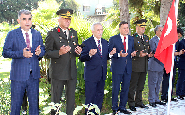 Antakya Atatürk Anıtı önündeki törende Gürcistan Halk Dansları Topluluğu’nun yöresel dans gösterisinin ardından Hatay Valisi Erdal Ata, Büyükşehir Belediye Başkanı Lütfü Savaş ve 39. Mekanize Piyade Tugay Komutanı Tuğgeneral Tevfik Erkan Olgay anıta çelenk sundu. Saygı duruşunda bulunulmasının ardından İstiklal Marşı okundu. Şeref defterini imzalayan Vali Ata, saygı atışı yapılmasının ardından yaptığı konuşmada, “Hatay halkı 79 yıl önce kendisine vurulmak istenen esaret zincirini kırmış ve şanlı tarihinde yeni bir sayfa açmıştır. Türkiye Cumhuriyeti’nin mimarı Gazi Mustafa Kemal Atatürk’ün ’40 asırlık Türk yurdu ecnebi elinde esir kalamaz’ diyerek sahip çıktığı Hatay, Milli Mücadele’nin ilk kurşununu atarak Ata’sının bu mücadele de yalnız olmadığını tüm Dünya’ya ilan etmiştir. Üstün bir sadakat ve vatanseverlik ile bu topraklar için canlarını seve seve feda eden şehitlerimizin gösterdiği yüksek karakter bugünde yüreklerimiz de mevcuttur. Hatay’ın anavatana katılışının 79. Yıldönümü vesilesi ile başta Gazi Mustafa Kemal Atatürk olmak üzere canlarını bu topraklar için veren tüm şehitlerimize rahmetle, minnetle, şükranla anıyoruz. Ruhları şad olsun” dedi. Konuşmaların ardından Vali Ata ve beraberindekiler, şehitliği ziyaret ederek, şehit ailelerine karanfil dağıttı. Kur’an-ı Kerim’in okunmasıyla törenler sona erdi.