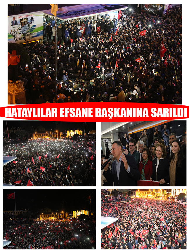 Hataylılar tüm renkleriyle hemşehrilerini kucaklayan, Başkan Savaş’a can-ı gönülden sarıldı. Hatay Büyükşehir Belediye Başkanı Doç. Dr. Lütfü Savaş, halkın büyük desteğiyle oyların%55’ini alarak seçimin galibi oldu. Sandıklarına sahip çıkarak seçimin adilane bir şekilde gerçekleşmesine katkıda bulunan Hataylılar, kentin dünden bugüne taşıdığı tevazu düsturuna yakışır bir seçim atmosferi yaşamanın mutluluğunu yaşadı. Sandıkların tamamına yakının açıldığını ve Başkan Savaş’ın seçimi kazanan aday olduğunu öğrenen vatandaşların coşkusu sokaklara taştı. Hatay Büyükşehir Belediyesi önünde halaylar çekerek seçimi kazanmanın coşkusunu yaşayan vatandaşların sevinci havai fişek gösterisi ile perçinlendi.