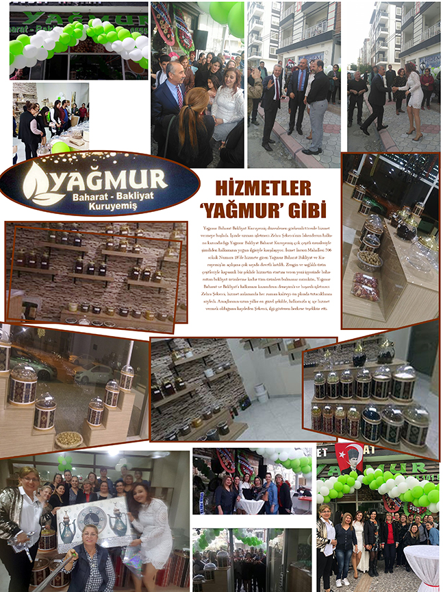 Yağmur Baharat Bakliyat Kuruyemiş düzenlenen görkemli törenle hizmet vermeye başladı. İşinde uzman işletmeci Zehra Şekerci’nin İskenderun halkına kazandırdığı Yağmur Bakliyat Baharat Kuruyemiş çok çeşitli ürünleriyle şimdiden halkımızın yoğun ilgisiyle karşılaşıyor. İsmet İnönü Mahallesi 706 sokak Numara 18’de hizmete giren Yağmur Baharat Bakliyat ve Kuruyemiş’in açılışına çok sayıda davetli katıldı. Zengin ve sağlıklı ürün çeşitleriyle kapsamlı bir şeklide hizmetin startını veren yeni işyerinde baharattan bakliyat ürünlerine kadar tüm ürünleri bulmanız mümkün. Yağmur Baharat ve Bakliyat’ı halkımıza kazandıran deneyimli ve başarılı işletmeci Zehra Şekerci, hizmet anlamında her zaman kaliteyi ön planda tutacaklarını söyledi. Amaçlarının uzun yıllar en güzel şekilde, halkımızla iç içe hizmet vermek olduğunu kaydeden Şekerci, ilgi gösteren herkese teşekkür etti.