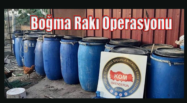 | Hatay’ın Arsuz ilçesinde 2 bin 40 litre boğma rakı olarak tabir edilen el yapımı içki ele geçirildi.İskenderun İlçe Emniyet Müdürlüğü Kaçakçılık ve Organize Suçlarla Mücadele Grup Amirliği ekipleri gelen ihbarı değerlendirdi. Ekipler, Madenli Mahallesi üzerinde bulunan bir evde yapılan aramada, büyük bidonlar içerisine 2 bin litre fermente halde ayrıca 40 litre satışa hazır boğma rakı olarak tabir edilen el yapımı toplam 2 bin 40 litre içki ele geçirildi.Olayla ilgili gözaltına alınan D.B.U adlı şüpheli hakkında yasal işlem yapıldığı bildirildi. |
