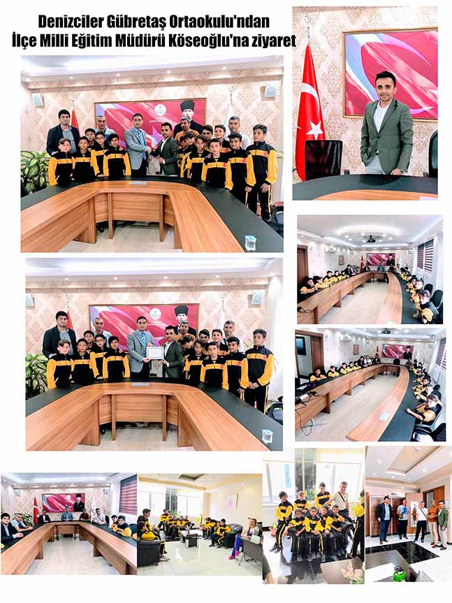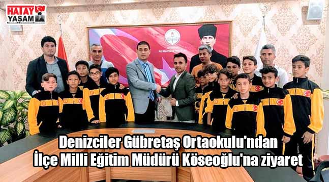 İlçe Milli Eğitim Müdürü Kemal Köseoğlu, Denizciler Gübretaş Ortaokulu’na, yılboyunca sportif başarıları ile okullar arası minikler futbol turnuvasında bölge ve İskenderun şampiyonu olması dolayısıyla ziyaret etti.Denizciler Gübretaş Ortaokulu, Hatay Şampiyonası öncesinde okulu ziyaret ederek, öğrencilere başarılar diledi. Okul Müdürü Adem Kesik İlçe Milli Eğitim Müdürü Kemal Köseoğlu teşekkür belgesi verdi. Okul Müdürü Kesik, yaptığı açıklamasında, başta İlçe Milli Eğitim Müdürü Kemal Köseoğlu’na, başarılarının mimarı müdür yardımcılarıma, futbol antrenörü Mehmet Emin Şenel ile beden eğitimi öğretmenlerine, her daim öğrencilere moral motivasyonda destek sağlayan rehber öğretmeni Serkan Öncel’e, başarıları için ter döken sporcu çocuklara ve okulun tanıtımına her daim katkıda bulunan Hatay Yaşam Medya Grubu Başkanı Sadullah Aslan’a teşekkür etti.