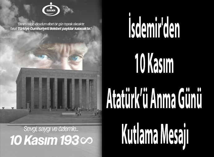 Ana Sayfa Genel İsdemir’den 10 Kasım Atatürk’ü Anma Günü Kutlama Mesajı GenelÜst Manşet İsdemir’den 10 Kasım Atatürk’ü Anma Günü Kutlama Mesajı 07 Kasım 2025 FacebookTwitterPinterestWhatsAppLinkedinEmailYazdırTelegram İlgili HaberlerYazarın Diğer İçerikleri Genel İsdemir’den 29 Ekim Cumhuriyet Bayramı Kutlama mesajı Genel Asaş Filtre’den 29 Ekim Cumhuriyet Bayramı Kutlama mesajı Genel İskenderun Organize Sanayi Bölgesi’nden 29 Ekim Cumhuriyet Bayramı Kutlama mesajı