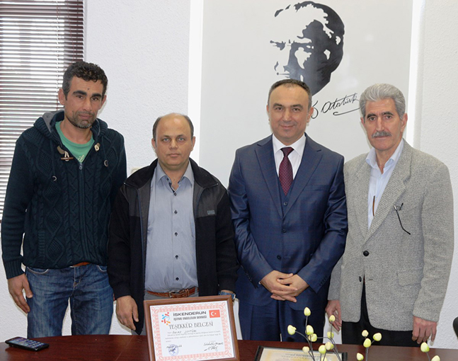 İskenderun İşitme Engelliler Derneği Başkanı Mehmet Çörtük ve beraberindeki yönetim kurulu üyelerinden oluşan heyet, İlçemiz Kaymakamı Sayın Recep Soytürk’e nezaket ziyaretinde bulundu. 29 Mart 2018 Perşembe günü saat:16.00’da Kaymakamlık Toplantı Salonu’nda gerçekleşen ziyarete, Derneğin 2.Başkanı Sabahattin Kaymaz, Tercüman Zeynep Oğuz ve işitme engelli vatandaşlarımız da iştirak etti. İşitme Engelliler Derneği Başkanı Mehmet Çörtük, tercüman aracılığıyla duygu ve düşüncelerini ifade ederek, “İskenderun Kaymakamı Recep Soytürk’ün İşitme Engelliler Derneğine ve engelli vatandaşlarımıza maddi ve manevi desteği bizleri memnun ettiği gibi aynı zamanda onurlandırmıştır. Bu çerçevede kendisine canı gönülden teşekkür ediyoruz.” dedi. İşitme Engelliler Derneği tarafından tanzim edilen Teşekkür Belgesi’ni Kaymakam Soytürk’e takdim eden Başkan Mehmet Çörtük ve 2.Başkan Sabahattin Kaymaz ile yönetim kurulu üyeleri günün anısına bir de fotoğraf çekildi. Ziyaret dolayısıyla memnun olduğunu belirten Kaymakam Soytürk, Dernek Başkanı Mehmet Çörtük ve 2.Başkan Sabahattin Kaymaz ile beraberindeki yönetim kurulu üyelerine hassasiyetlerinden dolayı da teşekkür ederek, “Engelli vatandaşlarımızın toplumsal hayata uyum sağlamaları sürecinde pozitif ayrımcılıkla onların yanındayız.” dedi.
