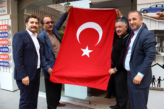 Hatay’ın İskenderun Belediyesi, Türk Silahlı Kuvvetlerinin (TSK) teröristlere karşı Afrin’de başlattığı ‘Zeytin Dalı Harekatı’nda görev yapan Mehmetçiklere destek olmak amacıyla kentteki esnaflara ve vatandaşlara bayrak dağıtımı yaptı. İskenderun kent merkezindeki esnaflara bayrak dağıtımı gerçekleştiren İskenderun Belediye Başkan Yardımcısı Halim Öztaş, Özel Kalem Müdür Vekili Ali Çift, Zabıta Müdürü Bekir Aksoy, Afrin’de teröristlere karşı sürdürülen operasyona ve Mehmetçiklere destek olmak, milli birlik ve beraberliğe katkı sunmak amacıyla esnaflara bayrak dağıtımı gerçekleştirdiklerini söylediler. Bayrak dağıtımı sırasında Başkan Yardımcısı Halim Öztaş, Kuzey Kıbrıs Türkiye Cumhuriyeti’nden (KKTC) İskenderun’a gelen, KKTC Din İşleri Başkan Yardımcısı Mustafa Küçük ile beraberindeki heyete kenti gezdiren Kaymakam Recep Soytürk’e de bayrak takdim etti. Kaymakam Soytürk de bu anlamlı çalışmalarından dolayı başta İskenderun Belediye Başkanı Seyfi Dingil olmak üzere herkese teşekkür etti. Kahraman Mehmetçiklere destek olmak ve milli birlik ruhu oluşturmak amacıyla esnafa bayrak dağıtımı gerçekleştirdiklerini ifade eden Belediye Başkan Yardımcısı Halim Öztaş, “Ülkemizin toprak bütünlüğünü tehlikeye düşürecek tehditleri ortadan kaldırmak için terör örgütlerine karşı yapılan bu operasyonda kahraman askerlerimize destek olmak için esnafımıza bayrak dağıtımı yapıyoruz. Esnafımızın iş yerlerinde bayraklar sürekli asılı kalacak. Zorlu bir süreçten geçiyoruz. Birlik ve beraberliğimizi güçlü tutarak, belediye ve birey olarak üzerimize düşen ne varsa yapmaya çalışıyoruz. Yapmaya da devam edeceğiz. Allah Mehmetçiklerimizin yardımcıları olsun. Dualarımız onlarladır” şeklinde konuştu.