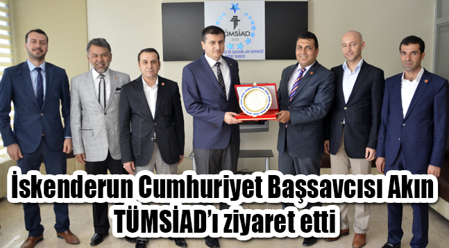 Dernek binamızda üyelerimize yönelik çeşitli kurslar veriyoruz. Geçtiğimiz ay başlattığımız Selam Projesi de çok yankı buldu. Şu anda İskenderun Halk Eğitim Merkezi ile kursların verilmesi ile ilgili yeni bir protokol imzaladık. TÜMSİAD olarak amacımız bölge ekonomisine katkının yanı sıra, sosyal aktivitelerle de insanlarımıza hizmet etmeyi hedefliyoruz” dedi. TÜMSİAD Hatay Şube Başkanı Av.Hasan Ertürk ziyaretin anısına İskenderun Cumhuriyet Başsavcısı Abdulkadir Akın’a plaket takdim etti.