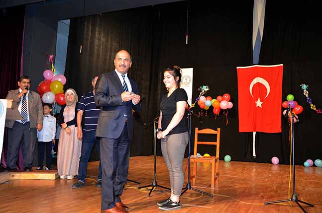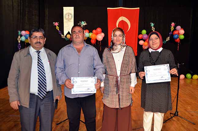 Kaymakam Kılınçkaya, “Sizlerin sevinçlerine ortak olmak için buradayız” İskenderun Mesleki Eğitim Merkezinde bulunan Al Avde Gem öğrencilerinin hazırladığı etkinlikte, Mesleki Eğitim merkezine devam eden Türk çıraklar ve Gem de eğitim gören Suriye’li öğrencilerin hazırladıkları gösteriler ilgi ile izlendi. İstiklal Marşı okuma yarışmalarında birinci gelenlere çeyrek altın, 2.lere 1 gram altın, 3.lere ise 50 TL para ödülü verildi. Yarışmalarda Mesleki Eğitim merkezi birincisi kuaför 2 A’dan Buket Gül olurken, 6. Sınıftan berber Metin Ekinci ikinci ve 2 B’den Kantin Sabriye Yalçın ve Kuaför 2 B’den Havva Açıkgöz dereceye girdiler. Programın açılış konuşmasını yapan İskenderun Mesleki Eğitim Merkez Müdürü Yusuf Yıldırım; “Kurumumuzda 520 civarında çırak ve usta eğitim görmektedir. Mesleki Eğitim Merkezi olarak sanayi esnaflarına çırak ve usta yetiştirmelerini sağlıyoruz. Şu ana kadar 10 bin kalfalık belgesi, 8 bin ustalık belgesi verildi. Kurumumuzda Milli bilinci geliştirmek amacıyla İstiklal Marşı okuma yarışması düzenlendi. Bu akşam dereceye giren öğrencilerin okuyacakları İstiklal Marşı, şiir ve gösterile ilgiyle izleyeceğinizi umut ediyoruz. Öğrencilerimizin yetişmelerinde emeği geçen tüm eğitmenlerimize teşekkür ediyoruz” dedi. Etkinliğe katılan Payas Kaymakamı ve İskenderun Kaymakam vekili Hakan Kılınçkaya ise; “Sizlerin sevinçlerinize ortak olmak için buradayız. Sizler burada Türk dilini de öğreniyorsunuz. İnşallah yakın zaman da meslek sahibi de olacaksınız. Biz Türk milleti olarak sizleri bağrımıza bastık, ekmeğimiz, hanelerimizi, sizlerle paylaştık. Çünkü siz bizim kardeşimizsiniz. Bizler Sizleri ülkemizde misafir ediyoruz. Burada hep birlikte kardeşçe yaşıyoruz” dedi. İskenderun Mesleki Eğitim Merkezinde bulunan Al Avde Gem öğrencilerinin hazırladığı gecede konuşmaların ardından ödül törenine geçildi. İstiklal Marşını okuma yarışmasında 1. Besar Mahsen olurken Delal Hişşan 2. Abdurrahim Mahsan’da 3.lüğü elde ettiler. İstiklal Marşı okuma yarışmalarında birinci gelenlere çeyrek altın, 2.lere 1 gram altın, 3.lere ise 50 TL para ödülü verildi. Yarışmalarda Mesleki Eğitim merkezi yarışmasında dereceye giren, birinci kuaför 2 A’dan Buket Gül olurken, 6. Sınıftan berber Metin Ekinci ikinci ve 2 B’den Kantin Sabriye Yalçın ve Kuaför 2 B’den Havva Açıkgöz dereceye girdiler. Türk öğrencinin kuaför 2. Sınıf çırak öğrencinin ödülünü ilçe Milli Eğitim müdürü Mehmet Tuğrul takdim ederken, AlAvde geçici eğitim gören Suriyeli öğrenciye ise Payas Kaymakamı İskenderun Kaymakam vekili Hakan Kılınçkaya verdi. 2. Ve 3.lere ödüllerini İlçe Milli eğitim Şube müdürleri verdi. İskenderun Mesleki Eğitim Merkezince düzenlenen İstiklal Marşı okuma yarışmasında birinciliği elde eden Baser Mahsan, coşku ile okuduğu istiklal marşını Suriyeli aileler de ayakta alkışladılar. Programda Suriyeli öğrencilerinin okudukları ilahi, türkü ve tiyatro gösterileri ilgi ile izlendi. Programın sonunda ise AlAvde müzik öğretmenine, kurum müdürü Yusuf Yıldırım’a Al Avde koordinatörünce teşekkür belgesi takdim edildi.