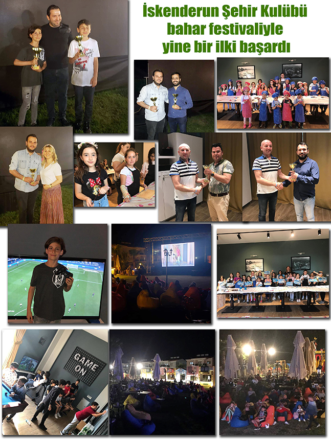 İlkleri hayata geçiren İskenderun Şehir Kulübü yine sıradışı bir organizasyona imza attı. İskenderun Şehir Kulübü tarafından 26-27-28 Nisan tarihlerinde hayata geçirilen ‘Bahar Festivali, renkli görüntülere sahne oldu. Bahar Festivali kapsamında Pandora, Grup Oops, Ezgi Türkoğlu, DJ Açık Hava Sineması ve gün boyu aktivitelerle katılımcılar hoşça vakit geçirirken, Playstation Turnuvası Şampiyonu Sergen Uysal ve finalisti Kenan Gökten, kupalarını İskenderun Şehir Kulübü Başkanı Semir Yıldız’ın elinden aldı. Okey turnuvası birincileri Çağrı Aytaş ve İbrahim Döner çifti kupalarını Sema Yıldız Rende’den aldı. Son gün etkinliklerinde Pınar Chef ile Cooking Workshop, minik eklerden çıkan enfes lezzetlerin yanı sıra, açık hava sinemasıyla keyifle geçen festival noktalandı.