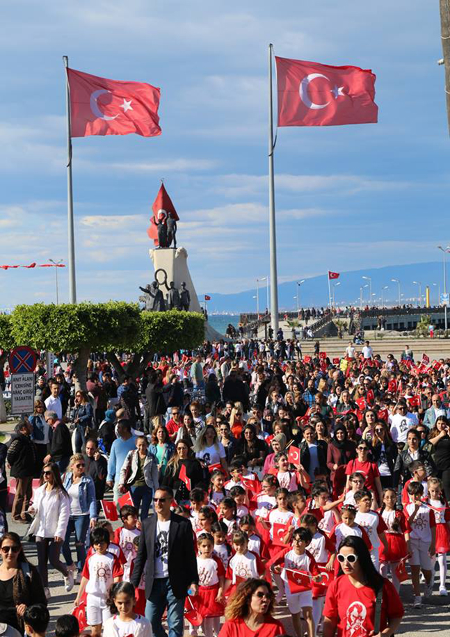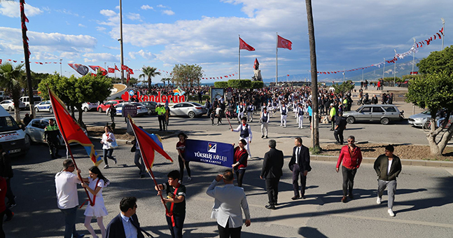 İskenderun’da bulunan okullar yürüyüş kortejinde buluştular. Anıt alanında toplanan öğrenciler renge renk kıyafetleri ile 23 Nisan’kutlamalarına renk kattılar. Anıt alanında başlayan yürüyüşte şehrin ana caddelerinde boy gösteren kortej vatandaşlar tarafından alkışlarla karşılandı.