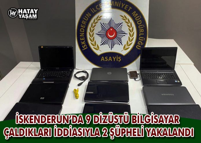 İskenderun ilçesinde bir iş yerinden 9 dizüstü bilgisayar çaldıkları iddiasıyla 2 şüpheli gözaltına alındı. İskenderun İlçe Emniyet Müdürlüğü ekipleri, Ziya Paşa Caddesi’nde bir iş yerinden 9 dizüstü bilgisayar çalınmasıyla ilgili çalışma başlattı. Şüphelilerin eşkalini belirleyen polis, adreslerine düzenlendiği operasyonla T.A.Ö. ve A.Ö’yü yakaladı. Söz konusu adreslerdeki aramalarda çalınan 9 dizüstü bilgisayar ele geçirildi. Gözaltına alınan şüphelilerin emniyetteki işlemleri sürüyor.