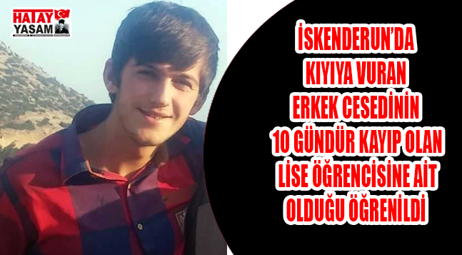 Hatay’ın İskenderun ilçesinde dün kıyıya vuran erkek cesedinin 10 gündür kayıp olan lise öğrencisi Ali Eken’e ait olduğu öğrenildi. Ankara’dan Hatay’a taşınan ve Denizciler Mahallesi’nde ikamet eden Eken ailesinin lise 11. sınıfa giden oğulları Ali Eken (18), 17 Ocak günü akşam “Camiye gidiyorum” diyerek evden çıkmış kendisinden 10 günden bu yana haber alınamıyordu.