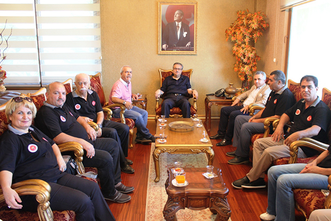 Karma Dövüş Sanatları Federasyonu Milli hakemlerinden oluşan İskenderun Hakem komitesi üyeleri Mersin Valisi Ali İhsan Su’yu makamında ziyaret ettiler. Geçtiğimiz hafta sonu Mersin Aslanköy yaylasında ilki düzenlenen uluslar arası KDSF şampiyonasına hakem olarak katılmak üzere Mersine giden Karma Dövüş Sanatları Federasyonu İskenderun hakem komitesi üyelerini Mersin Valisi Ali İhsan Su makamında kabul etti. Hafta sonu olmasına rağmen İskenderun’dan ziyaretine gelen konuklarını Mersin Valiliği sahil ofisindeki makamında ağırlayan Vali Ali İhsan Su, konuklarıyla ayrı ayrı sohbet ederek ilgilendi. Karma Dövüş Sporu ile ilgili bilgi alışverişinde bulunulan ziyarette Vali Su hakemlere ve sporculara başarılar diledi. Ziyaretçilerin arasında bulunan İskenderunlu genç Tekvando şampiyonu Sudenaz Atar kısa bir gösteri yaparak Vali Su’nun ilgisini çekti. Vücudunu lastik gibi kullanan genç sporcunun aynı zamanda başarılı bir jimnastikçi olduğunu da öğrenen Vali Ali İhsan Su, Sudenaz’ı tebrik ederek başarılar diledi. Yine ziyaret esnasında Yakın dövüş sporları antrenörü ve milli hakem ihsan Akpınar da kendini tanıtırken bestekâr sanatçı kimliğini de ifade ederek Vali Su’ya bir adet klibini imzaladı. Oldukça renkli ve samimi konuklarını ağırlamaktan keyif aldığını belirten Mersin Valisi Su, İskenderun’da Kaymakamlık yaptığı sırada tanıştığı İşadamı Sabahattin Uygun ve Gazeteci Semir Yazıcı’yı da ziyaretçilerin arasında görmekten dolayı ayrıca memnuniyetini ifade etti. Vali Ali İhsan Su, kendisine yeni görev yerinde başarılar dileyen ve Hayırlı olsun diyen eski dostları Sabahattin Uygun ve Semir Yazıcı ile birlikte İskenderun’a dair anıların ve dostlukların konuşulduğu samimi bir sohbet gerçekleştirdiler. İskenderun’u çok sevdiğini, sıcakkanlı, samimi ve centilmen İskenderun halkını unutamadığını söyleyen Vali Su en kısa zamanda İskenderun’u ziyaret ederek hasret gidermeyi düşündüğünü ifade etti ve İskenderunlu dostlarına selamlarını iletti.