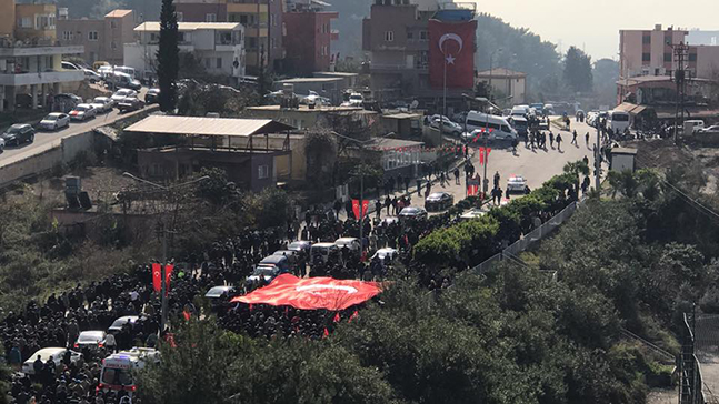 Dün Hassa’da teröristlerin roketli saldırısı sonucu şehit düşen İskenderun’lu Uzman Çavuş Selim Vurdal, dua ve gözyaşlarıyla son yolculuğuna uğurlandı. Şehidimizin Karayılan Mahallesi’nde düzenlenen cenaze töreninde teröre lanet yağdı. Al bayrağımıza sarılı şehit Uzman Çavuş Selim Vurdal’ın naaşı omuzlara alınarak tekbir ve dualarla defnedildi.