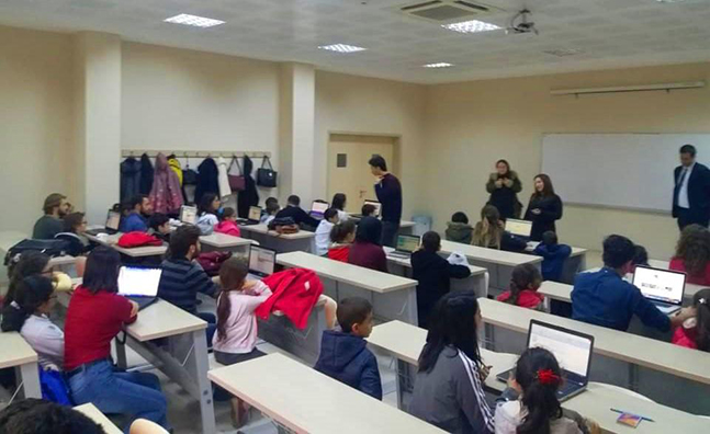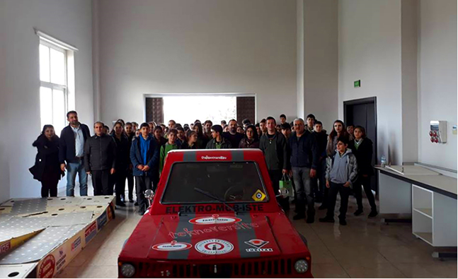 İSTE Çocuk Üniversitesi’nin organizasyonu ile yapılan sosyal sorumluluk projesi çerçevesinde; İSTE IEEE Öğrenci Topluluğu üyeleri, bilim, kültür ve sanatı konuşmak için İskenderun Fikret Koçak İlkokulu ve İskenderun BİLSEM öğrencileri ile İSTE’de buluştu. Yapılan etkinlik kapsamında; üniversitede bulunmanın heyecanı ile mutlulukları yüzlerinden okunan ilkokul öğrencileri, İSTE Mustafa Yazıcı Devlet Konservatuvarı, Peyzaj Mimarlığı Bölümü, Mekatronik Mühendisliği Bölümü, İSTE Çocuk Kütüphanesi; İSTE Master Planı Maketi ve İSTE’nin tasarlayıp ürettiği elektrikli otomobili Elektro-Mob-İSTE’yi görme ve inceleme fırsatı buldular. Geleceğin teminatı olan çocukları, İSTE olarak misafir etmekten büyük onur duyduklarını dile getiren İSTE Çocuk Üniversitesi Koordinatörü Dr. Öğr. Üyesi S. Sinem Özyurt Ökten; “Geldiler, gördüler, öğrendiler, eğlendiler. Öğrenciler ile birlikte, ‘Konservatuarda dersler nasıl yapılır? Hangi enstrümanlar öğrenilir? Fagot nedir, nasıl üretilir, nasıl ses çıkarır? Bu piyanonun kuyruğu neden kısa?’ gibi soruların cevaplarının da bulunduğu çok eğlenceli ve çok öğretici dersler işledik. Daha sonra Peyzaj Mimarlığı Bölümü’ne geçerek hocamız Dr. Öğr. Üyesi Onur Güngör’ün ‘Çizim ve Grafik Anlatım Tekniği’ dersine katıldık. Ders sonunda – Peyzaj Mimarlığı nedir? – Çizim derslerinde neler yapılır? – Bu kadar yeşil alan bize yeterli mi? sorularına cevap arayan çocuklarımızın çevreye karşı duyarlılıkları herkesi mutlu etti. Kendilerine hayat boyu soru sormaya ve çözüm aramaya devam etmeleri gerektiğini anlattık. Geldikleri ilk andan itibaren elektrikli otomobilimiz Elektro-Mob-İSTE ‘yi görmek için can atan çocuklara hangarımızı da açtık. Enerji Mühendisliği Bölüm Başkanı Dr. Öğr. Üyesi Emin Taner Elmas ve otomobilimizin kaptan pilotu Görkem Güney otomobilimizle ilgili tüm detayları anlattılar, soruları yanıtladılar. Bizi ziyaret eden tüm öğretmen ve öğrencilerimize çok teşekkür ediyoruz” dedi. İlkokul öğrencileri ve öğretmenleri; gezdikleri İskenderun Teknik Çocuk ve Gençlik Kütüphanesi’nin kitap çeşitliliğine ve sunulan bilim keşif setlerine hayran kaldıklarını dile getirdiler. Etkinlik kapsamında; Mekatronik Mühendisliği Bölümü ve Elektrik-Elektronik Mühendisliği Bölümleri de ziyaret edildi. Laboratuvarlarda yapılmakta olan çalışmaları ilgiyle izleyen öğrenciler, çalışmalara katılım da sağladı. Ayrıca, İSTE-IEEE (Institute of Electrical and Electronics Engineers) Öğrenci Topluluğu’nun üye öğrencileri, birlikte çok başarılı işlere imza attıkları İskenderun BİLSEM (Bilim Sanat Merkezi) ile de buluştu ve ‘code.org scratch’ ile kodlama eğitimi yapıldı. İskenderun BİLSEM’in değerli öğretmenleri ve velilerinin de katıldığı eğitim başarıyla tamamlandı.