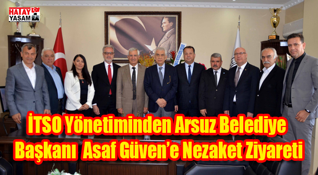 İskenderun Ticaret ve Sanayi Odası yönetim kurulu üyeleri Arsuz Belediye Başkanı seçilen Asaf Güven’i makamında ziyaret ederek yeni görevinde başarılar dilediler. İTSO yönetimini kapıda karşılayan Aruz Belediye Başkanı Asaf Güven, ziyaretten ötürü memnuniyetini dile getirerek, İskenderun ile Arsuz’un ayrılmaz bir bütün olduğunu vurguladı. Karşılıklı sohbet ortamında geçen ziyarette, Arsuz Turizmi, Arsuz Samandağı yolu, Altyapı sorunları ele alındı. Arsuz Belediye Başkanı Asaf Güven’in ziyaretinde, İTSO Onursal Başkanı Halil Şahin, İTSO Başkanı Levent Hakkı Yılmaz, İTSO Başkan yardımcıları Muhsin Yeter, Mahir Taner, İTSO Muhasip üye Gassan Kuran, İTSO yönetim kurulu üyeleri Müfit Tennioğlu, Selma Yılmaz, Yusuf Yılmaz yer aldılar.
