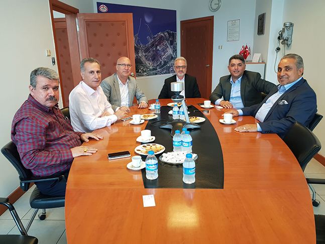 İskenderun Ticaret ve Sanayi Odası yönetim kurulu üyeleri, İsdemir İnsan Kaynakları ve İdari İşler Direktörü Hasan Durgun’u ziyaret etti. Karşılıklı sohbet ortamında geçen ziyarette, bölge ekonomisi ve çelik sektörü konularında karşılıklı fikir alış verişinde bulundu. Ziyaretten ötürü memnuniyetini dile getiren İsdemir İnsan Kaynakları ve İdari İşler Direktörü Hasan Durgun, İsdemir’deki çalışmalar hakkında İTSO yönetimine bilgiler verdi. İTSO Başkanı Levent Hakkı Yılmaz, ziyaretin anısına Durgun’a kahve ve fincan takımı hediye etti. İsdemir İnsan Kaynakları ve İdari İşler Direktörü Hasan Durgun’un ziyaretinde İTSO Başkanı Levent Hakkı Yılmaz, İTSO Başkan yardımcısı Muhsin Yeter, İTSO Muhasip üye Necat Özkaya, İTSO yönetim kurulu üyeleri Bülent Seküçoğlu Gassan Kuran ve Genel Sekreter Figen Gül Dönmez yer aldılar.