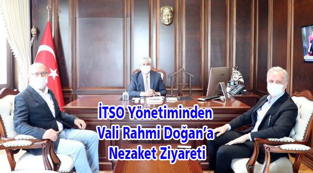 İskenderun Ticaret ve Sanayi Odası Başkanı Levent Hakkı Yılmaz ve Başkan Yardımcısı Muhsin Yeter, Hatay Valisi Rahmi Doğan’a nezaket ziyaretinde bulundular. İskenderun Valilik Çalışma Ofisinde gerçekleşen ziyarette, bölge ekonomisinin yanı sıra projeler değerlendirildi. İTSO Başkanı Levent Hakkı Yılmaz ise kabulünden dolayı Vali Doğan’a teşekkürlerini ileterek, ilimizin ve bölgemizin kalkınması için çalışmalarına devam edeceklerini belirtti. Hatay Valisi Rahmi Doğan’ın ziyaretinde, İTSO Başkanı Levent Hakkı Yılmaz, İTSO Başkanı Yardımcısı Muhsin Yeter yer aldı.