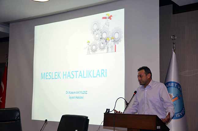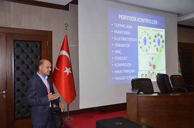 Toplantıda, Ortam Ölçümleri Periyodik konularında Remzi Gökhan Kazak, İş Kazaları ve Kazalara Reel bakış konusunda Mehmet Hakan Baki, Meslek Hastalıkları ve Nedenleri konusunda ise Kasım Akyıldız Sine vizyon destekli olarak sunumlar yaparak, İş Sağlığı ve İş Güvenliği konularında katılımcılara detaylı bilgiler verdiler. İskenderun Ticaret ve Sanayi Odası Halil Şahin Meclis salonunda gerçekleştirilen toplantıya İTSO Meclis Başkanı Servet Ugutmen, İTSO Yönetim kurulu üyesi Bülent Seküçoğlu, İTSO Eğitim ve Kalkınma Vakıf Başkanı Doğan Erten, İş-Kur Hatay İl Müdürü Ziya Yüksel, SGK İL Müdürü Hamit Bal, SGK İskenderun İlçe Müdürü Bilgin Çam İskenderun Serbest Muhasebeci Mali Müşavirler Odası Başkanı Merih Hasan Yıldırım, Meclis üyeleri, İTSO üyeleri, Mali Müşavirler iş adamları ve davetliler katıldılar.