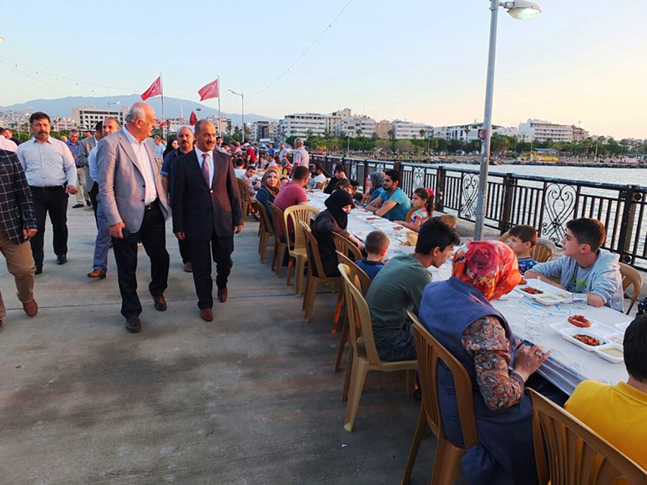 Payas Kaymakamı ve İskenderun Kaymakam Vekili Sayın Hakan Kılınçkaya, 6 Haziran 2017 Salı günü vatandaşlarımızla iftar yemeğinde bir araya geldi. İskenderun Belediyesinin ev sahipliğinde hayırsever işadamlarının katkıları ile İskele üzerinde düzenlenen iftar sofrasındaki vatandaşlarımız ile yakından ilgilenen Kaymakam Kılınçkaya, kardeşlik, paylaşma, dayanışma ve yardımlaşmanın yoğunlaştığı bu ortamda iftar yapmanın sevinç ve gurunu yaşadı. Ruhani bir gelişim mevsimi olan mübarek Ramazan ayının manevi ikliminde, bu güzel iftar saatinde kadirşinas İskenderun halkı ile birlikte olmaktan mutluluk duyduğunu ifade eden Kaymakam Kılınçkaya, “Ramazan ayının bolluğunun, bereketinin, kaynaşmasının yaşandığı, milletimizin birliğinin beraberliğinin ortaya çıktığı, yediden yetmişe, zengini ihtiyaç sahibiyle buluşturan bu tür sofralar; hem devletimizin şefkatini, hem işadamlarımızın cömertliğini, hem de aramızdaki dayanışma ve kaynaşmayı gösterme anlamında büyük önem arz ediyor. Bugün de burada Belediye Başkanımız, hayırsever iş adamlarımız ve kıymetli halkımız ile birlikte adeta bir İskenderun mozaiği çiziyoruz. Temennimiz odur ki bu tür birliktelikleri, kucaklaşmaları, kaynaşmaları hep yaşayalım. Herkesin birbirinin dilinden anlayacağı, barış ve kardeşliğin hakim olduğu ortamlar yaratalım.” diye konuştu. Akşam ezanın okunmasıyla birlikte hep bir arada iftar yapılarak, birlik, beraberlik, kardeşlik, dayanışma ve paylaşma adına güzel bir tablo oluştu.