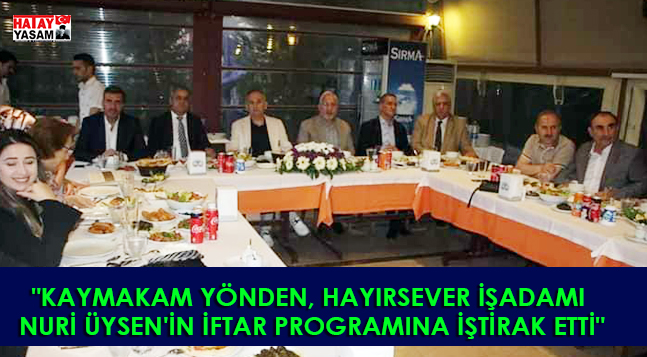 İlçemiz Kaymakamı Sayın İskender Yönden ve eşi hanımefendi Dr.Ayşenur Yönden, hayırsever işadamı Nuri Üysen tarafından düzenlenen geleneksel iftar programına iştirak etti. Kaymakam Yönden; Birlik, beraberlik, dostluk, dayanışma ve paylaşma erdeminin tatbiki ile huzura erdiğimiz müstesna bir zaman dilimi olan Ramazan-ı Şerifin ruhani gelişimini yaşarken; protokol, iş ve sanayi sektörünün dinamikleri ile vatandaşlarımızı gönül sofrasında buluşturan iftar programlarına katılımda bulanarak, manevi duygularımızın pekişmesine hassasiyet gösteriyor.