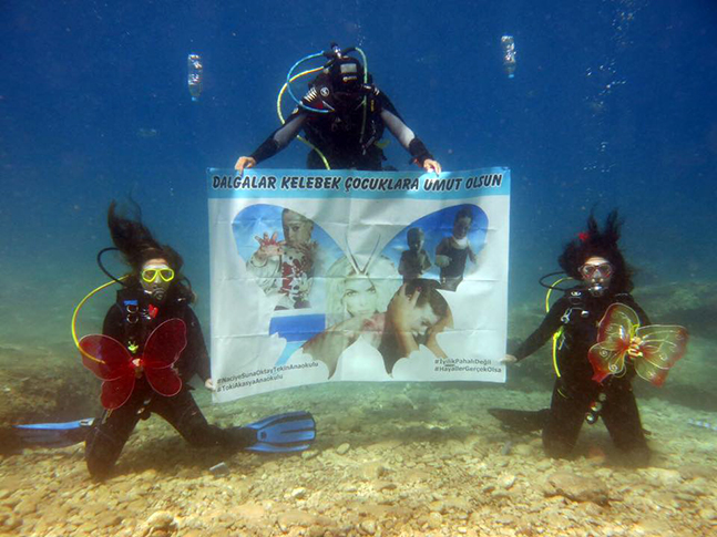 Naciye Suna Oktay Tekin Anaokulu yönetimi etkinliklerine her geçen gün yenilerini ekleyerek bu alanda rekora koşuyor. Kelebek hastalığına yakalanmış çocuklar için Naciye Suna Oktay Tekin Anaokulu yönetimince başlatılan “Merhamet Herkeste Olsun Sevap Limitiniz Dolsun” sloganıyla kelebek çocuklara yardım kampanyası amacına ulaşmıştı. Okul Müdürü Hüseyin Gündüz, yaptığı açıklamasında, “Topladığımız Yardımlar Hayaller Gerçek Olsa Derneği aracılığıyla ihtiyaç sahiplerine ulaştırılmıştır. Dernek farkındalık yaratıp, hastalığa dikkat çekmek için İstanbul ve Fethiye’de eş zamanlı dalış yapmıştır. Okulumuzun adını da kullanarak hazırladıkları pankart ve videolarla bize teşekkür ederek bizleri duygulandırmışlardır. Bizi bu kampanyadan haberdar eden okulumuz öğretmenlerine destek olan tüm velilerimize teşekkür ediyoruz. Kelebek çocuklara yardım etmek isteyen tüm duyarlı arkadaşlarımızı, velilerimizi Hayaller Gerçek Olsa Derneği’ne internetten ulaşarak ihtiyaçlarına bir nebze olsun katkı sağlamaları konusuna dikkat çekmek isterim. Kelebek çocuklara Allah’ım acil şifalar versin” şeklinde görüş ortaya koydu.