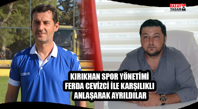 Spor Toto 3. Lig 2. Grubunda mücadele eden temsilcimiz Kırıkhan Spor’da son zamanlarda alınan başarısız sonuçların ardından Kulüp Başkanı Veli Özdoğan, yönetim kurulu üyeleri ile Teknik Direktör Ferda Cevizci kulüp binasında bir araya geldi. Yapılan toplantının ardından Kırıkhan Spor yönetimi ile Teknik Direktör Ferda Cevizci, karşılıklı olarak anlaşarak ayrılma kararı aldılar. Kulüp Başkanı Veli Özdoğan, ” Teknik Direktörümüz Ferda Cevizci ile anlaşarak sözleşmeyi karşılıklı olarak fesh ettik. Yaptığı hizmetlerinden dolayı kendisine teşekkür ediyoruz” dedi.
