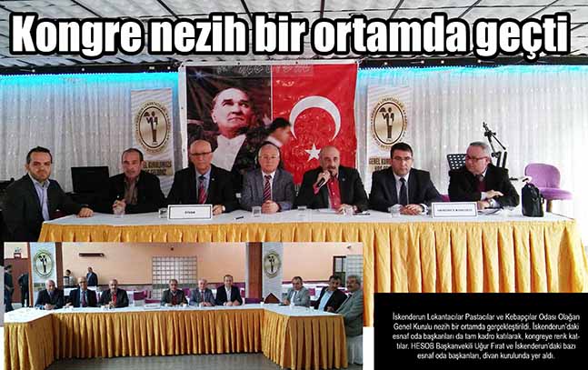 İskenderun Lokantacılar Pastacılar ve Kebapçılar Odası Olağan Genel Kurulu nezih bir ortamda gerçekleştirildi. İskenderun’daki esnaf oda başkanları da tam kadro katılarak, kongreye renk kattılar. HESOB Başkanvekili Uğur Fırat ve İskenderun’daki bazı esnaf oda başkanları, divan kurulunda yer aldı.