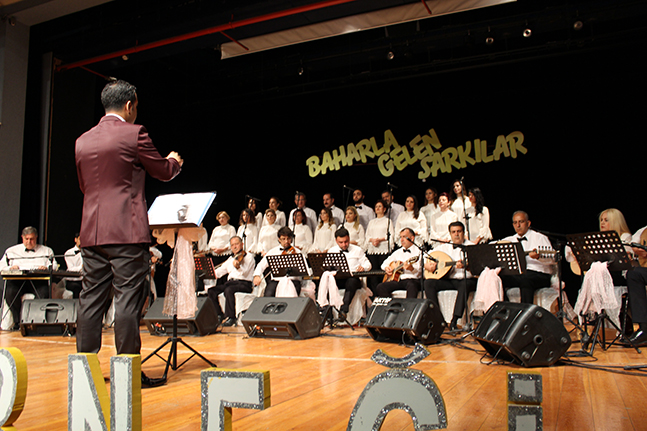 İskenderun Körfez Musiki Derneği’nin, İSTE Yazıcı Konservatuar Salonu’nda gerçekleştirdiği, Türk Sanat Müziği konseri, coşkulu geçti. Şef Mustafa Duran yönetiminde, “Baharla gelen şarkılar” konseri, sunucu Fatma Sivri’nin okuduğu bir şiirle başladı. Şiir sonrası İskenderun Körfez Musiki Derneği Başkanı Mehmet Bülent Keske kısa bir selamlama konuşması yaparak, sahne alan solist, korist ve müzisyenlerin özverili bir şekilde bu işe gönüllü olduklarını, müzik tutkusu ile yollarına devam ettiklerini ifade etti. Dernek Başkanı Keske’nin konuşmasından sonra başlayan konserde, koru çeşitli eserleri seslendirdi. Konserde solistler, Özlem Kasar, Tuncay Ataş, İlknur Tilki, Nalan Han, Erol Tabu, Hasan Büyükaşık, Sema İşçi, Serpil Akbulut, Eylem Eles sahne olarak parçalarını başarıyla seslendirdiler. Solistlerden Betül Özdemir ve Özgür Canatar ise ‘sevgi dolu şu gönlüm’ şarkısını düet yaparak söylediler. Konser sırasında salonda bulunan konuklarda zaman zaman parçalara eşlik edip, alkışla tempo tuttular. Konser bitiminde İskenderun Körfez Musiki Derneği Başkanı Mehmet Bülent Keske, Şef Mustafa Duran’a, başarılı performansı için tebrik ederek çiçek sundu. Dernek başkanı Keske, diğer çiçeği de sunum yapan Fatma Sivri’ye takdim etti.