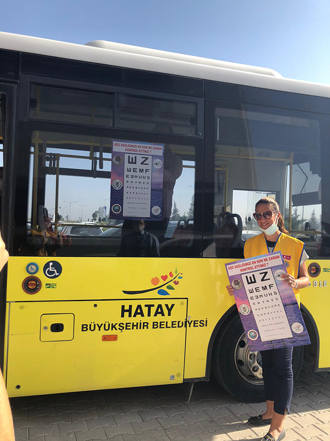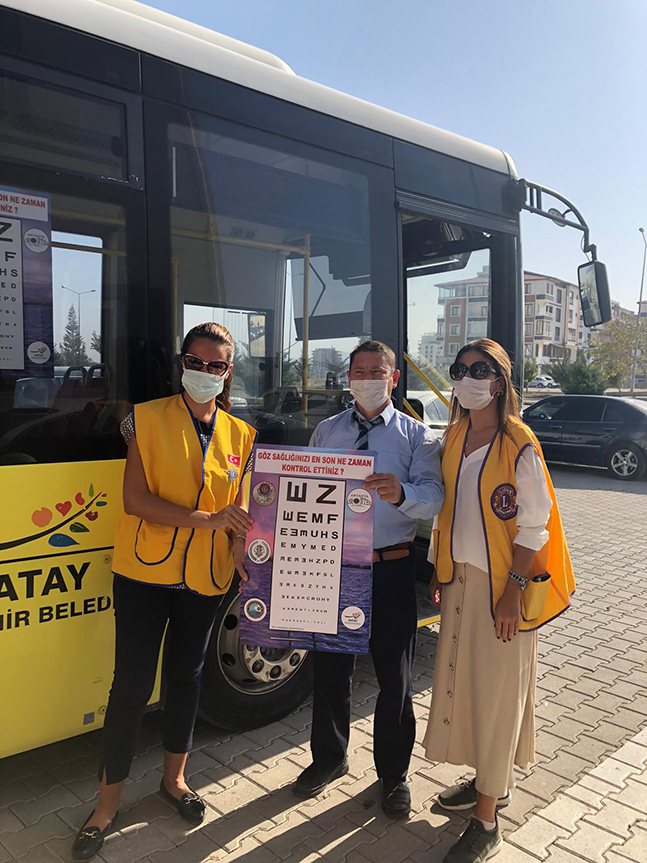 Hatay Lions Bölge Kulüpleri, Hatay Büyükşehir Belediyesi Ulaşım Dairesi Başkanlığını ziyaret ederek göz sağlığı için Büyükşehir Belediyesi araçlarına bilgilendirme afişleri astı. Lions Kulübü yöneticileri “göz eşelleri” ile kişilerin önlenebilir körlük ve göz bozukluklarında erken farkındalık yaratmak ve görme bozukluğunu farkedememiş bireyleri bilinçlendirmeyi amaçladıklarını belirterek sosyal güvencesi olmayan vatandaşların kulüpler ile irtibata geçildiği takdirde anlaşmalı göz doktoruna götürülerek tedavi edileceğini açıkladı. Lions Kulüp yöneticileri, HBB Ulaşım Dairesi Başkanlığına duyarlılığından dolayı teşekkür etti.