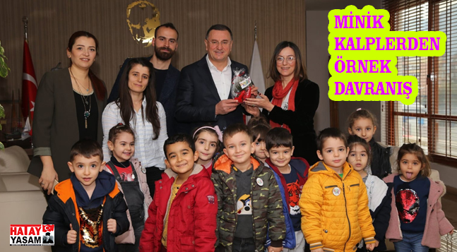 Kentin ve ülkenin aydınlık geleceğini oluşturan öğrenciler için var gücüyle çalışan Hatay Büyükşehir Belediye(HBB) Başkanı Doç. Dr. Lütfü Savaş, geçen günlerde çok önemli misafirleri konuk etti. Doğa Kreş ve Gündüz Bakımevi’nde eğitim gören çocuklar, Yerli Malı ve Tutumluluk Haftası ile yeni yıl etkinlikleri kapsamında yaptıkları pastaları satarak elde ettikleri gelir ile gönülleri fethetti. Yüreği yaşlarından büyük çocuklar gelirin tamamından mont ve kitap alarak HBB’nin sosyal marketlerine bağışladı. Bu duyarlı davranışı Başkan Lütfü Savaş ile paylaşan miniklerin mutluluğu ve heyecanı görülmeye değerdi. Gerçekleşen ziyaret ile ilgili düşüncelerini paylaşan Başkan Savaş, kalpleri sevgi ile atan çocukların öğretmen ve ailelerine teşekkür etti.